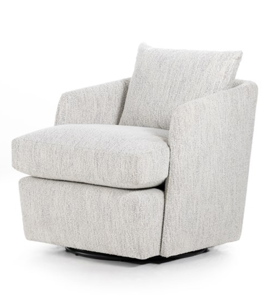 A comfortable classic. Atop a 360-degree swivel base, well-tailored cotton seating provides a beautifully simple place to perch in style, with feather-blend cushioning for total relaxation.